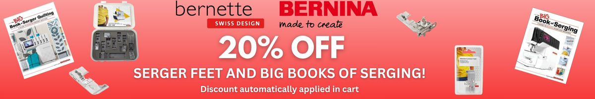 Bernina The Big Book of Serger Quilting “The Big Book of Serger Quilting” is jam-packed with tips, tricks, and techniques for piercing and quilting with an overlocker. Whether you want to try a new stitch, make the flattest seams, discover new variations, or pair your... MSRP: Was: Now: $125.00