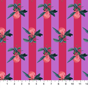Figo Fabrics - Rosa - Rose Buds On Stripe - Purple/Red #91152-26