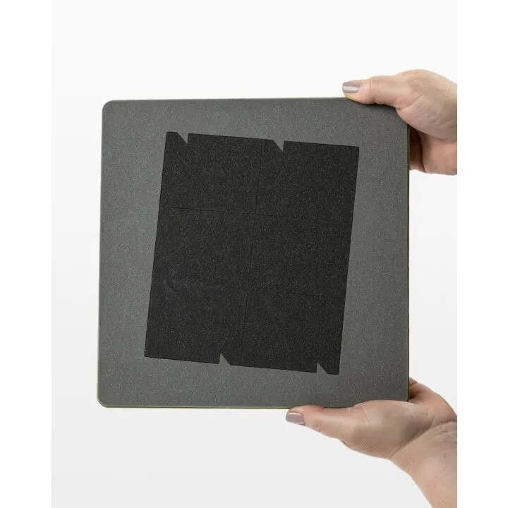 Make a variety of geometric patterns with this GO! Half Square 2" Finished Triangle. Two of the triangles cut with this die sew together to form a 2" finished half square triangle and match up with one 2 1/2" cut square. Easily make 8" blocks with 12 sewn half square triangles. This triangle die can also be used in combination with additional AccuQuilt GO! block dies that work together to create typical patchwork quilt blocks like the Pinwheel and Airplane blocks.