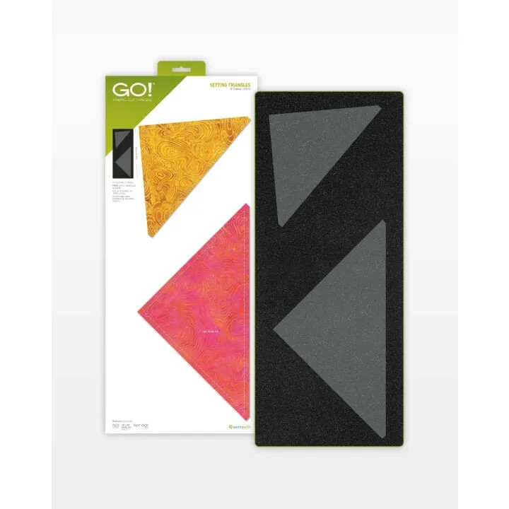 Setting blocks created with your GO! Qube or BOB (Block on Board) dies on point has never been so easy. AccuQuilt has taken math out of the equation and put both corner and side setting triangles on one die board to match up perfectly with all your 10" finished blocks.