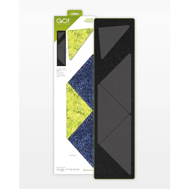 Setting blocks created with your GO! Qube or BOB (Block on Board) dies on point has never been so easy. AccuQuilt has taken math out of the equation and put both corner and side setting triangles on one die board to match up perfectly with all your 6” finished blocks.