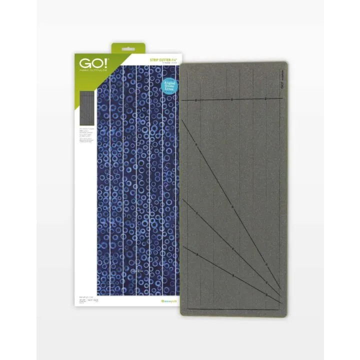 Eliminate elbows and get perfect strips with the GO! Strip Cutter-1 1/4" (3/4" Finished). As quick as it is easy, this die precisely cuts seven strips just right for binding, sashing and borders. The blades are ultra-sharp, yet incredibly safe. Blades are 23" long and open at both ends to cut folded fabric right off the bolt. You'll love how easy it is!