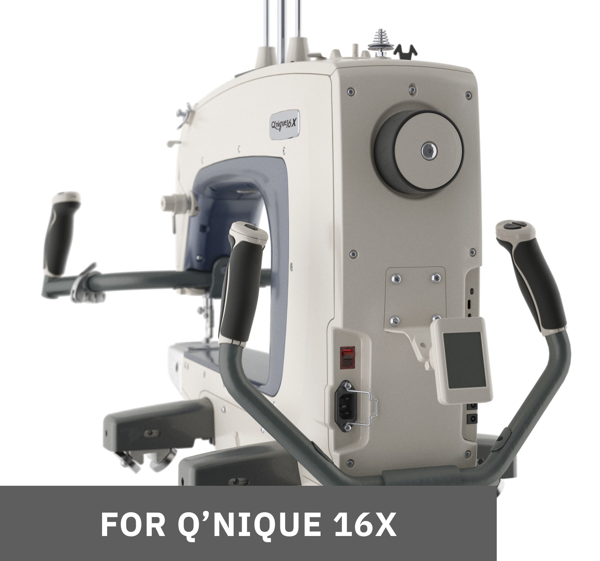 Work from the back of your quilting frame with these quilting machine rear handles for the Q'nique Quilter! This quilting accessory is essential if you plan on using any pantographs or patterns from the back table of your machine quilting frame. These rear handles feature the same quick access buttons as your regular quilting handles and even provide a connection for the LCD display so you can control all of the Q'nique Quilter’s functions and settings right from the rear of the machine.