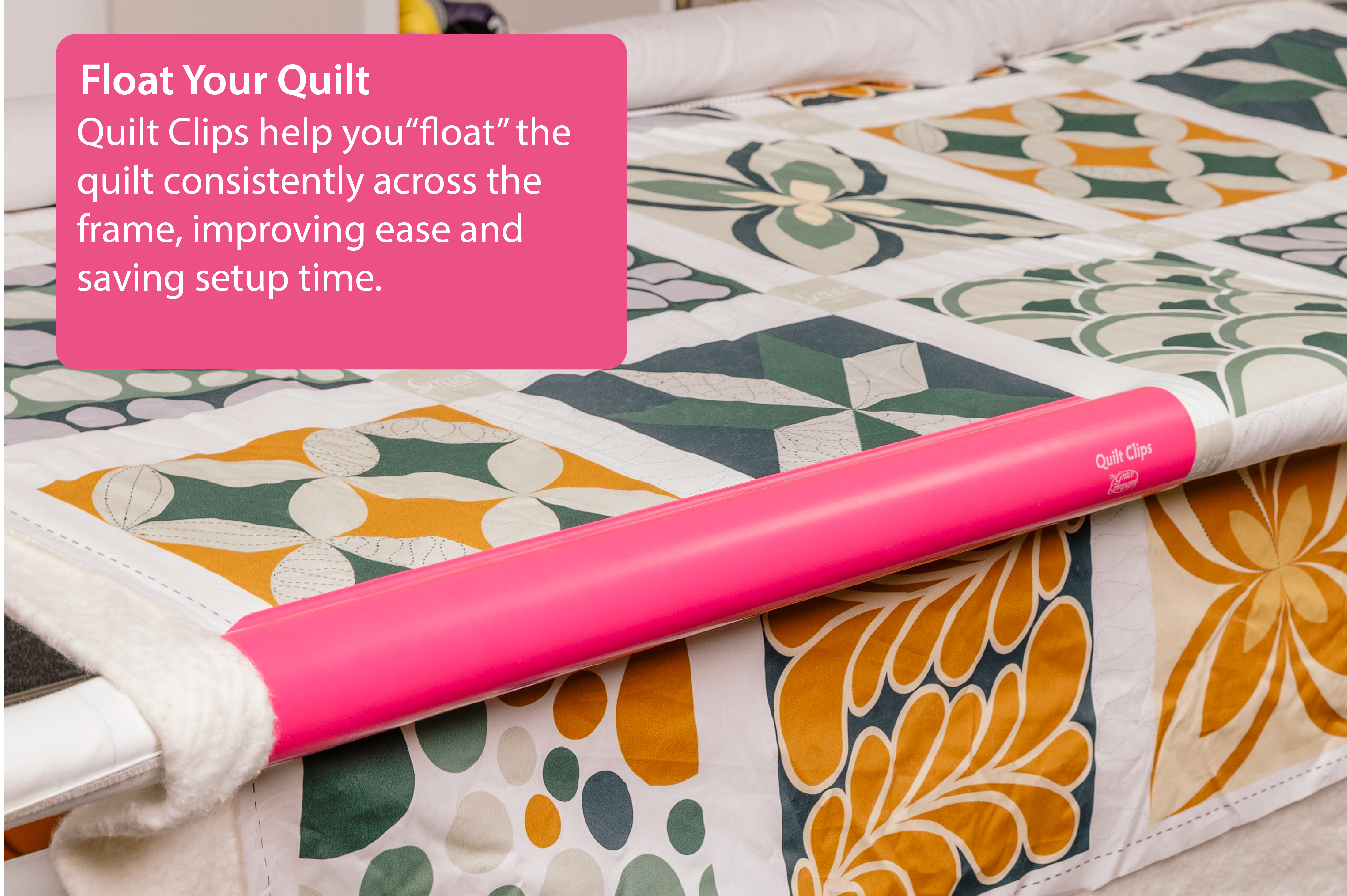 Quilt Clips make "floating" your quilt easier too! Use the Quilt Clips to attach your fabric to your quilting frame with less pinning.