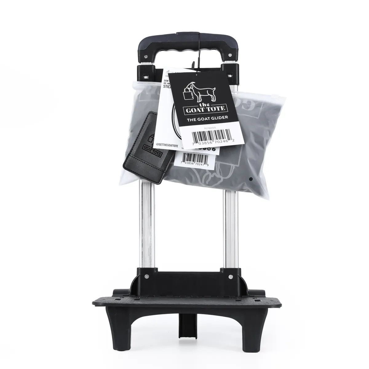 Already have a sewing machine tote bag? We get it! If you are tired of lugging around your heavy sewing machine by hand, we've got you covered. Give your carrying tote bag a major mobility upgrade with The Goat Glider Trolley Set! Designed to attach seamlessly to your existing sewing machine tote, this rolling wonder transforms your bag into a smooth-gliding travel companion.
