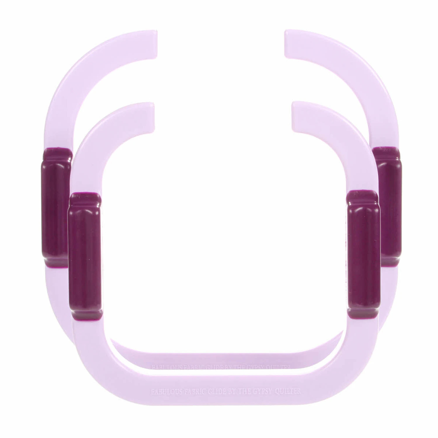 The Gypsy Quilter Fabulous Fabric Glide is a set of two semi-hoops that control the fabric during free-motion quilting on a standard home sewing machine. The squared shape allows a larger area to be quilted before needing to re-position the glide. They are easy to use and extremely light weight. Retain the desired fabric tension in all directions while preventing bunching. Relaxed hand positioning prevents hand, wrist and shoulder fatigue normally experienced when attempting to control the fabric. Place your thumb on the inside and your pointer finger on top. Relax your hands – no pressure is needed – which reduces the usual hand, wrist and shoulder fatigue. The textured bottom surface grips thick fabric layers securely, with minimal effort. These semi-hoops hold the fabric so you don’t have to – no gloves or other tools needed.